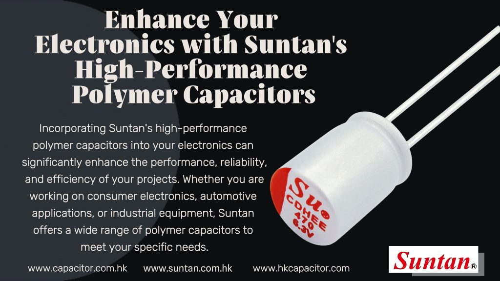 Suntan’s High-Performance Polymer Capacitors are a game-changer in the electronics industry. They combine exceptional performance, long lifespan, versatility, compact design, and cost-effectiveness, making them an invaluable component for modern electronic devices. By choosing Suntan, you ensure that your products are equipped with capacitors that meet the highest standards of quality and reliability.